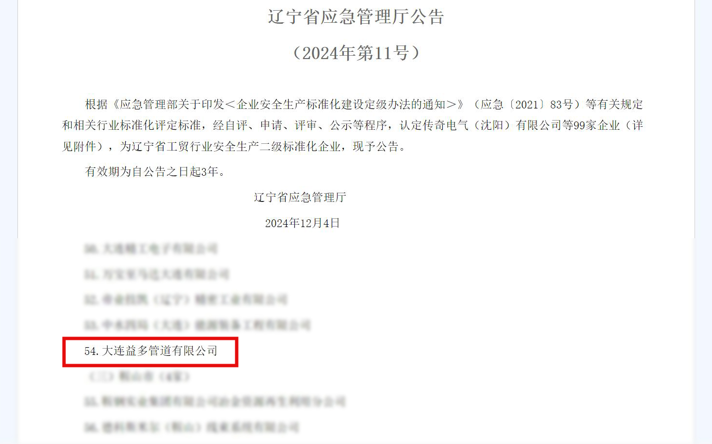 水果视频网站一直致力于安全生产标准化建设,持续提升安全生产管理水平,在辽宁省应急管理厅近日公布的安全生产二级标准化企业名单中,大连水果视频网站管道有限公司再次上榜。